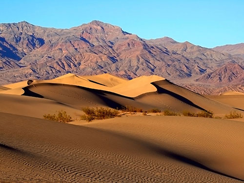 Death Valley is the hottest, lowest, and driest place in the United States. Daytime temperatures have topped 130 F (54 C) and it is home to Badwater Basin, the lowest elevation in North America. A diversity of colorful canyons, desolate badlands, shifting sand dunes, sprawling mountains, and over 1000 species of plants populate this geologic graben. Additional points of interest include salt flats, historic mines, and springs.