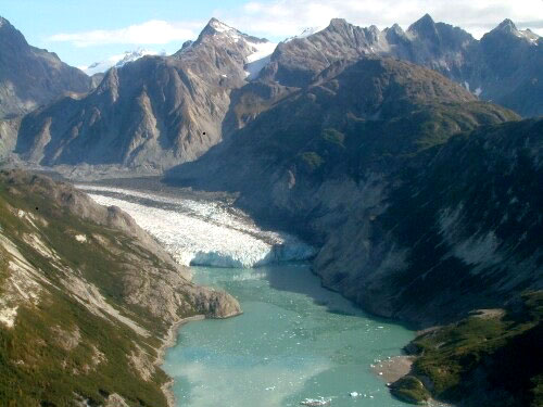 Glacier Bay has numerous tidewater glaciers, mountains, fjords, and a temperate rainforest, and is home to large populations of grizzly bears, mountain goats, whales, seals, and eagles. When discovered in 1794 by George Vancouver, the entire bay was covered in ice, but the glaciers have since receded more than 65 miles (105 km).