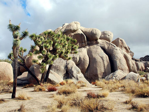 Covering large areas of the Colorado and Mojave Deserts and the Little San Bernardino Mountains, this exotic desert landscape is populated by vast stands of the famous Joshua tree. Great changes in elevation reveal starkly contrasting environments including bleached sand dunes, dry lakes, rugged mountains, and maze-like clusters of monzogranite monoliths.