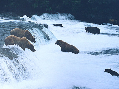 This park on the Alaska Peninsula protects the Valley of Ten Thousand Smokes, an ash flow formed by the 1912 eruption of Novarupta, as well as Mount Katmai. Over 2,000 grizzly bears come here each year to catch spawning salmon. Other wildlife includes caribou, wolves, moose, and wolverines.